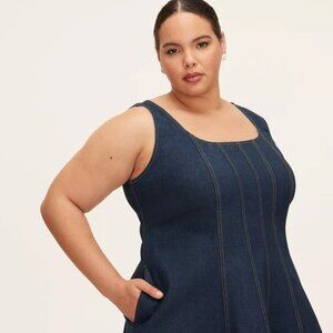 NOTE: This denim doesn't have stretch to it and most reviews note that this item seems to run on the smaller side. You can read them for yourself here if you'd like: https://www.target.com/p/women-s-denim-seamed-mini-dress-kate-spade-new-york-x-target-dark-blue/-/A-93620647?preselect=93377680#lnk=sametab