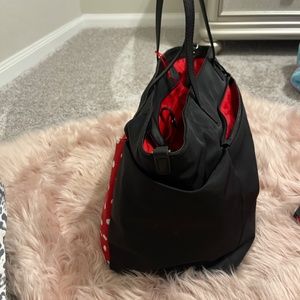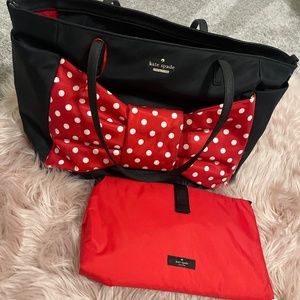 Bag was used 3 times and is is great condition. White mark on the was there as this was the only bag left when bought from Disney world. The diaper changing mat has been used multiple times and has some stains and marks on it. It has been washed and cleaned multiple times but still is in great condition. The only thing with the mat is the marks didn’t come out.