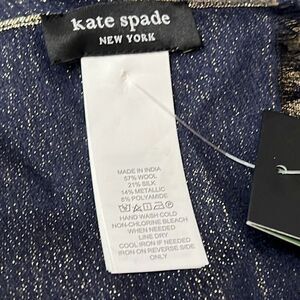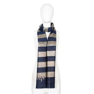 kate spade new york Women's Scarf Logo Awning Stripe Yarn Dye NWT Wool Silk Blue