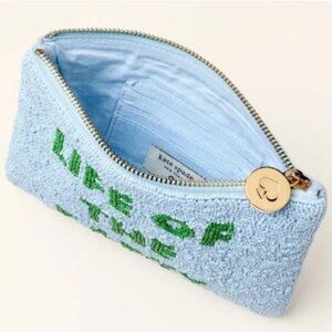 Compliment your outfit with this LTD EDITION Life of the Party Beaded Clutch from kate spade new york x Target. Made from cotton and covered with blue/green beads that spell out "Life of the Party," this clutch-style handbag features a zip closure. Plus, interior credit-card pockets provide extra storage options.