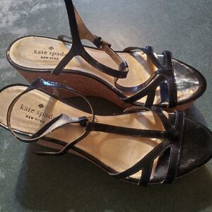 kate spade strappy black wedge sandals sz 10 in good used condition with some wear as shown in the pictures.