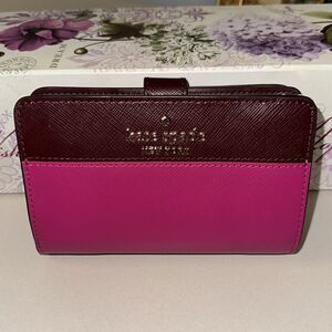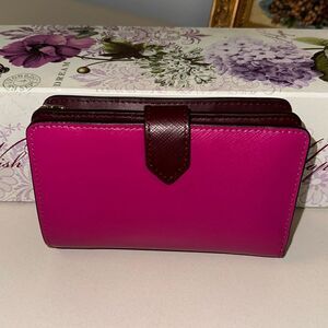 kate spade Fuchsia Pink Burgundy Two Tone Leather Madison Medium Bifold Wallet