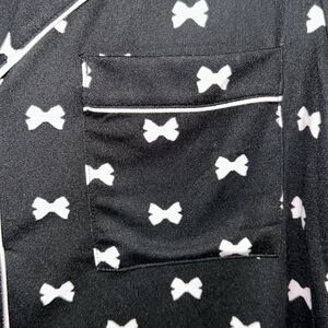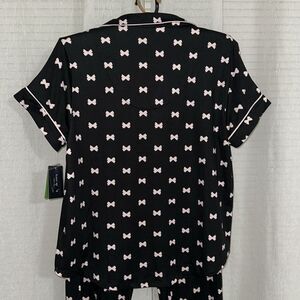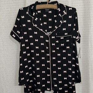 kateβspade M-XL Black Blush Pink Bow Tie Short Sleeve Notch Crop Pants PJ Set