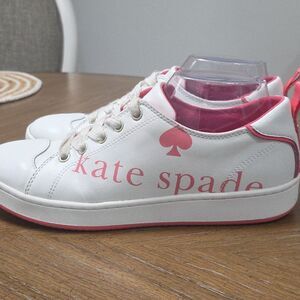 kate spade Nikki Signature Logo Leather Sneakers Optic White Pink Peppercorn8.5B,,Excellent condition