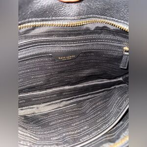 Gold-tone exterior hardware; interior slip pocket & zip pocket
