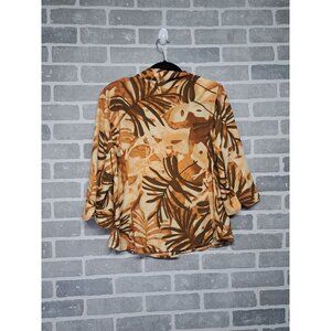 kathy Che Vintage Womens Palm Print 3/4 Sleeve Collared Button-Up Shirt Size 12