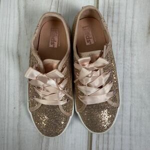 item: keds kickstart jr celebrations size: 10C condition: gently used, some signs of wear as pictured color: rose gold