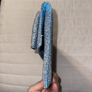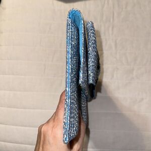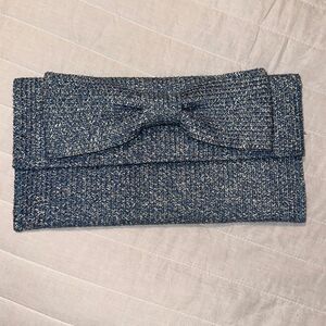 kelly & katie Blue White Heathered Paper Straw Large Bow Envelope Clutch