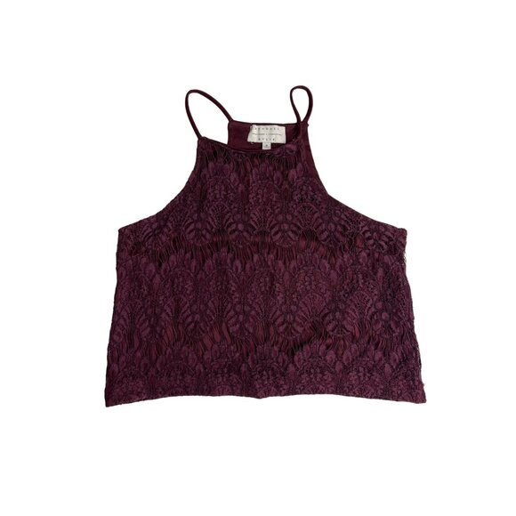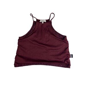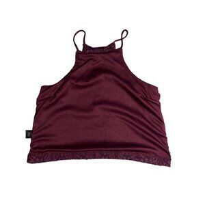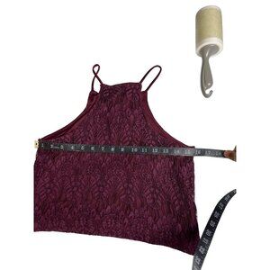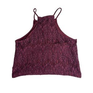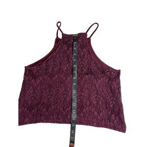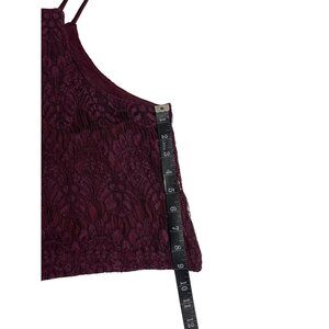 kendall kylie small wine thin strap sleeveless floral lace crop top Dd541