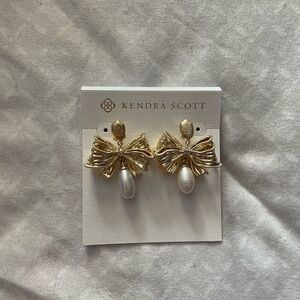 kendra scott x loveshackfancy pearl bow gold statement earrings brand nwt