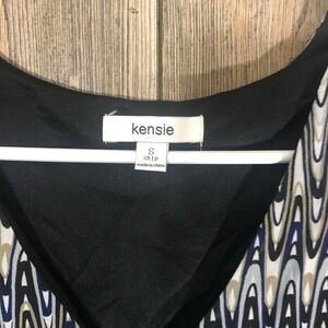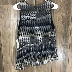 Kensie Asymmetrical Tank Top Sz Small NWT Geometric print in Blue, black, tan and white. Z26
