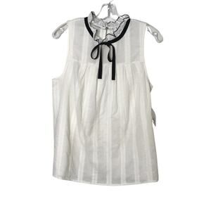 kensie Sleeveless Ruffle Trim Embroidered Stripes Babydoll Top White Small