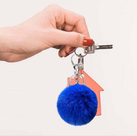 Material,Synthetic fibre. The artificial fur Puff with Metal Keychain Ring