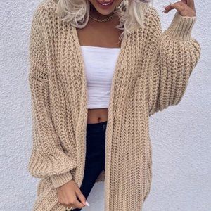 khaki Chunky Knit Open front comfy cozy sweater Cardigan