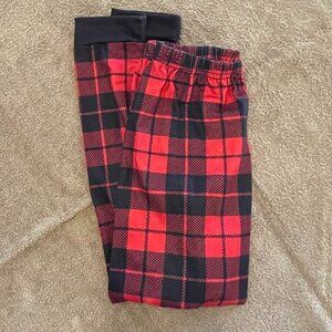 kids Christmas jammie set, size 8-9T, black/red checkered bottoms, red/black top with Christmas reindeer, in great condition