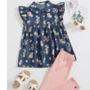 Charming floral dress paired with peach leggings. Perfect for a stylish look.