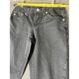 The product is a pair of True Religion kids jeans in size 16, featuring a relaxed straight fit. The denim fabric is black in color, making it a versatile and stylish option for both boys and girls. With a slim fit and relaxed style, these jeans offer both comfort and fashion for young wearers.