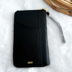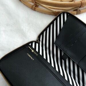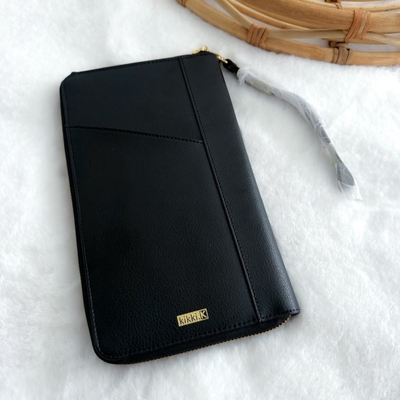 Elegant black wallet by kikki.K. Sleek design with gold accents. Perfect for everyday use.