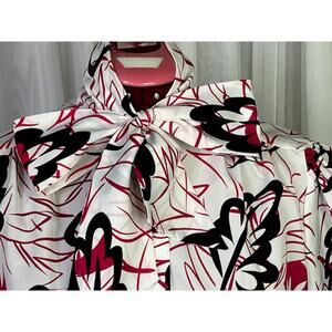 kitten bow blouse abstract leaves red black 1980s