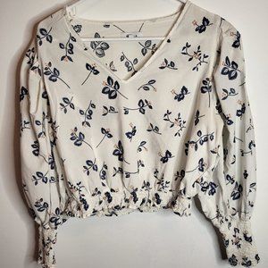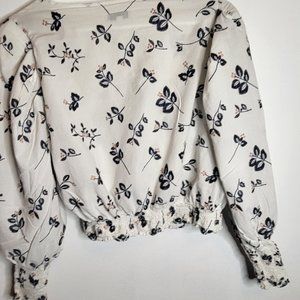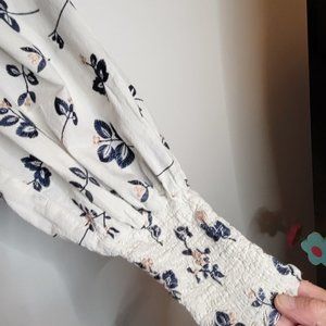 k/lab women's blouse. Size XL, floral embroidery design throughout, v neck. Balloon type long sleeves with shirring at the cuffs, Shirring at the hemline, as well. Shorter style. Relaxed fit. 100% cotton. Very nice preowned condition! Please see photos for more details.