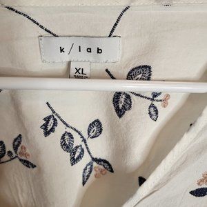 k/lab women's blouse. Size XL, floral embroidery design throughout, v neck.