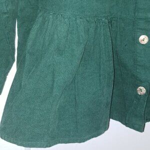 kleen Green Cordoroy Button Down Long Sleeve with Peplum Waist Shirt Size Medium