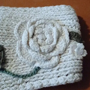 like new. decorated with knitted flowers