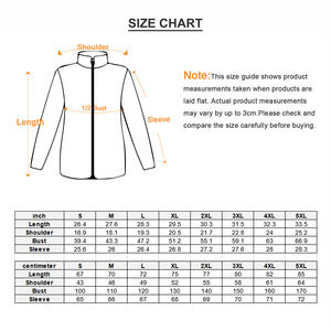 Centimeter S M L XL 2XL 3XL 4XL 5XL Length 67 70 72 75 77 80 82 85 Shoulder 43 46 49 52 55 58 61 64 Bust 100 110 120 130 140 150 160 170 Sleeve 65 66 67 68 69 70 71 72