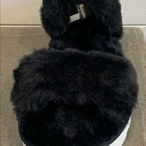This adorable sandal will keep you nice and toasty indoors or outdoors. The classic black color will look great with various styles. Would make a great gift!