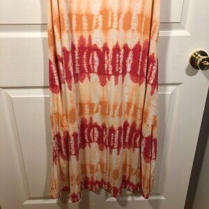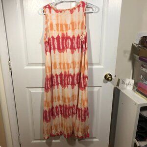 koolaburra orange tie-dye print sleeveless maxi dress, size L, measures approximately when laying flat: armpit to armpit 20", length 47"