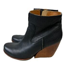 kork ease Michelle Ankle Zip Boots Women Size 9M Black Leather Wood Wedge Heel
