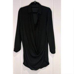 krisa Drape Button Front Mini Dress in Black - Size S