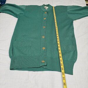 l. Magnin by Ballantyne Button Up Cardigan Sweater Women Size M Green Pure Wool