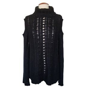 l love Black Open Shoulder Cable Knit Sweater