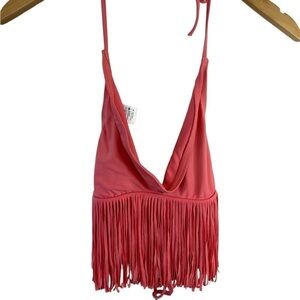 L*Space Audrey Fringe Halter Bikini Top in Watermelon Color. Wear as a bikini top or crop top.