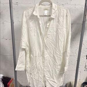 l*Space Button Down Long Sleeve Ivory Shirt Dress or Cover Up in Medium LIKE NEW