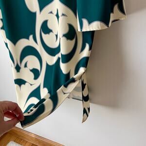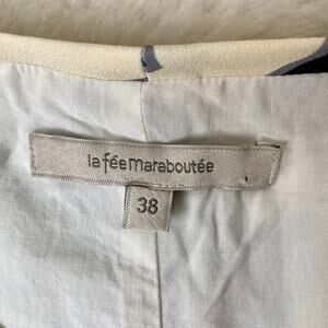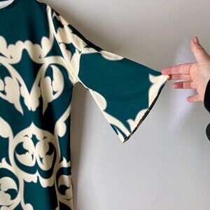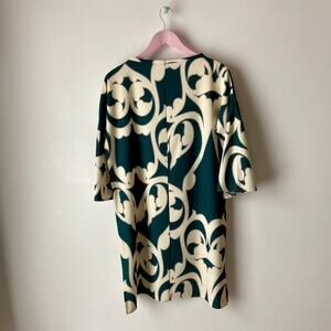 Dark green and cream color printed mini long sleeve shift dress by Anthropologie brand la fée maraboutée. Great preowned condition. Size 38. Measurements in photos.