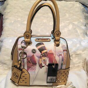 la pdhilipe large stones queen of eygypt pyrimid purse tan white tote