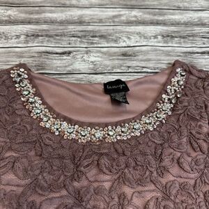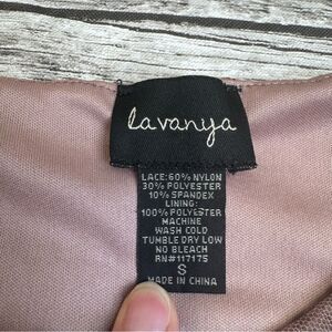 la vanya Women's Lace Overlay Jeweled Neck Tee T Shirt S SM Small Purple Stretch
