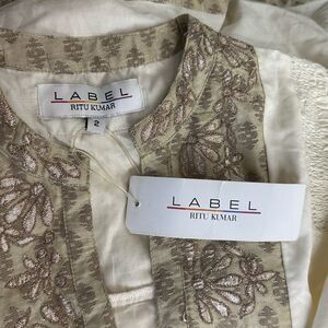label ritu kumar Beige gold Embroidered peasant blouse Size 2
