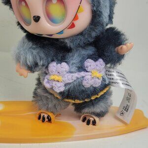 labubu lavender bikini orange bottom and surfboard, no doll hnad knitted bathing suit 2 pcs