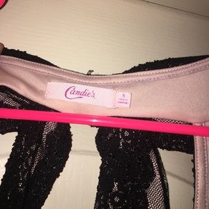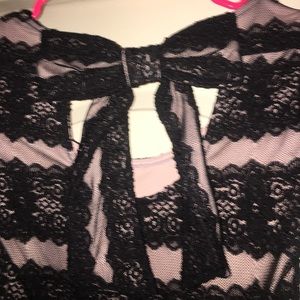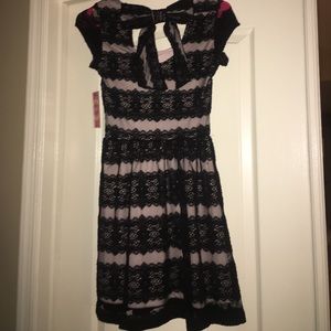 size small black tie candies dress. it is a black and cream lace dress with one bow in the back. Brand new dress has never been worn and still has the tags on it. very fashionable dress.
