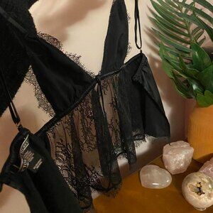 tags victoria secret babydoll cami top coquette milkmaid top bustier corset lace goth emo black lingerie