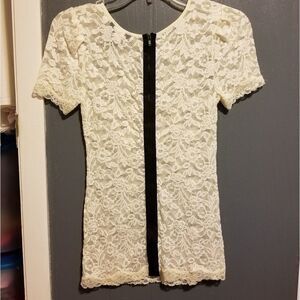 Cream colored all over lace top. zip back. got from Victoria's secret website but the tag says moda international. Never used