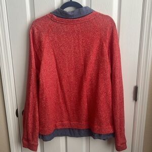 This gives you the look of layering without the bulk. Size xl marled red sweater with attached bottom and top of a collared shirt—super cute. Interior of sweater is like a terry cloth. Great condition, smoke and pet free home. Fast shipping!