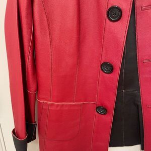 ladies red leather Peck & Peck jacket coat buttons inside pockets cuff detail S