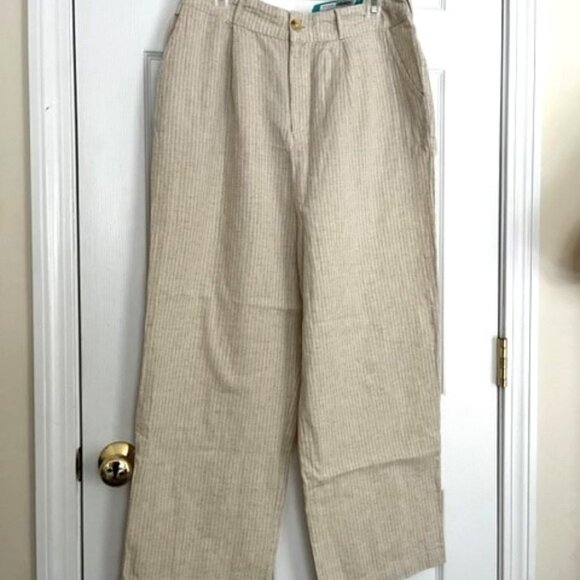 ladies size L Dizzy Lizzy beige white striped button zip back elastic pants
