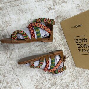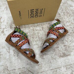 laidbacklondon Sandals Womens Size 7.5 Brown Lauri Flat Beaded Gladiator EU 38