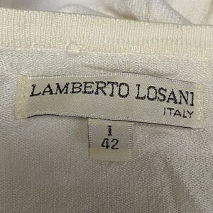 Elevate your wardrobe with this stunning Lamberto Losani cardigan. The ivory color and open-knit style make it a perfect addition to any outfit. The long sleeves and 90% rayon, 5% nylon, 5% spandex material provide both comfort and durability. This cardigan is a size 42 and is perfect for regular size types. It is also a great choice for women's clothing. The embellishments add a touch of elegance to this sweater, making it a perfect choice for any occasion.