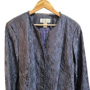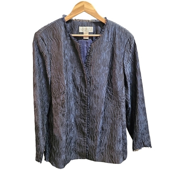 Èlana By Tanner Silk Blend 3D Knit V-Neck Blazer Navy Plus Size 16 Lined Pintuck